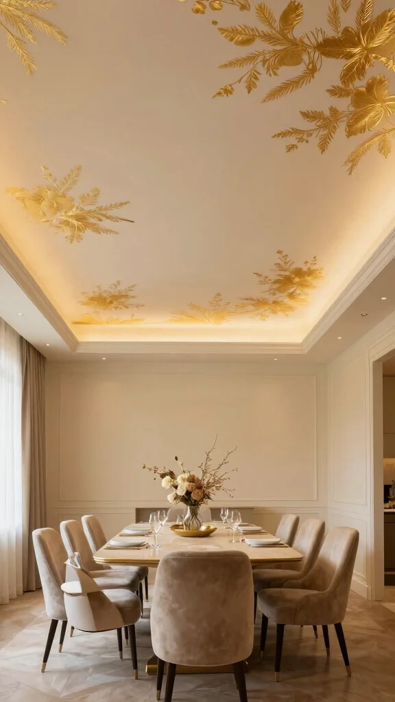 Incorporating gold leaf accents into your false ceiling elevates your space to a luxurious level. This opulent choice is perfect for entryways or dining rooms, adding glamour and sophistication to any decor.