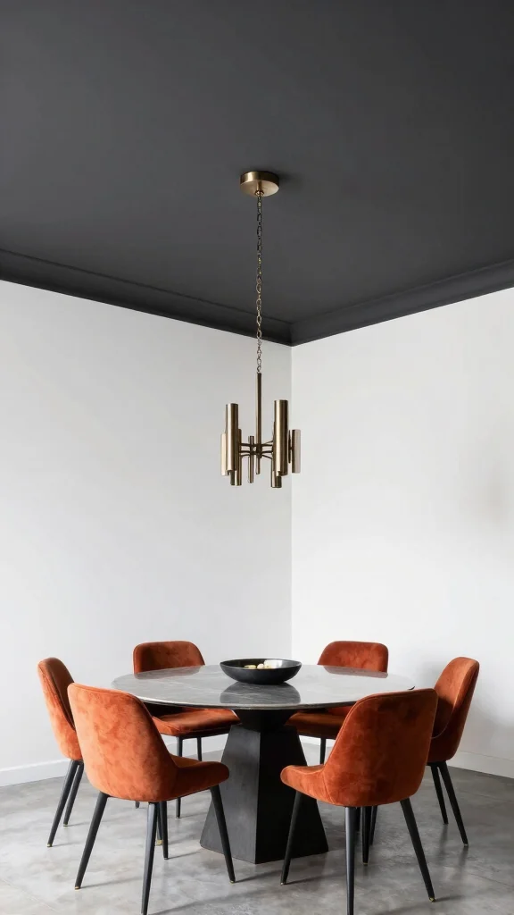 Charcoal gray ceilings can make a striking statement in any space. This deep tone adds depth and sophistication, particularly in larger rooms. Bright furniture and vibrant accents pop against the dark backdrop, creating a stunning contrast.
