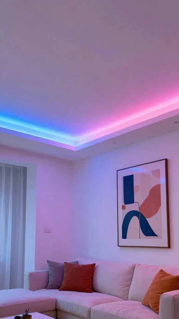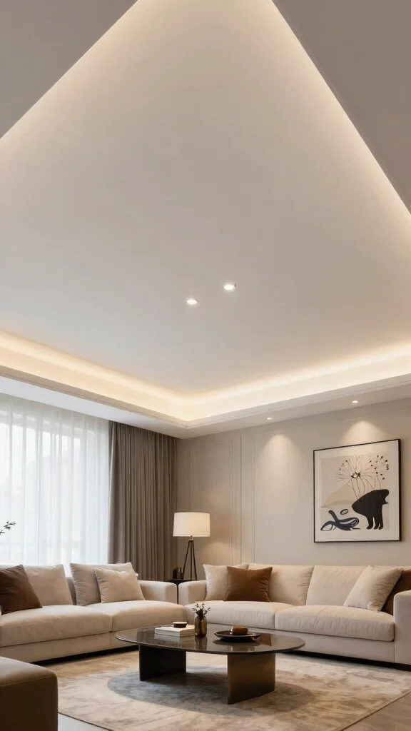 Cove lighting can elevate your ceiling into a luxurious focal point, enhancing your living room’s beauty.