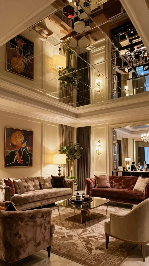 To achieve the best effect, pair mirrored ceilings with elegant furnishings for a cohesive look. Soft lighting enhances reflections, avoiding harsh glare. Choosing tiles instead of a full ceiling mirror offers a more practical approach while maintaining the glam effect. This design aligns with trends focusing on chic and stylish interiors.