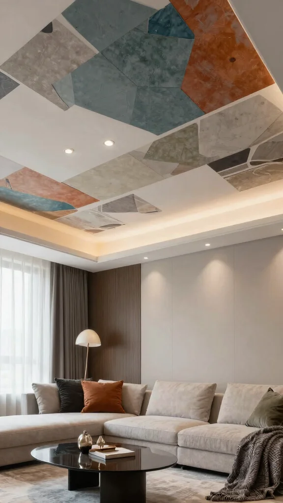 – Discover geometric and layered designs that bring depth and modern vibes to your ceiling.