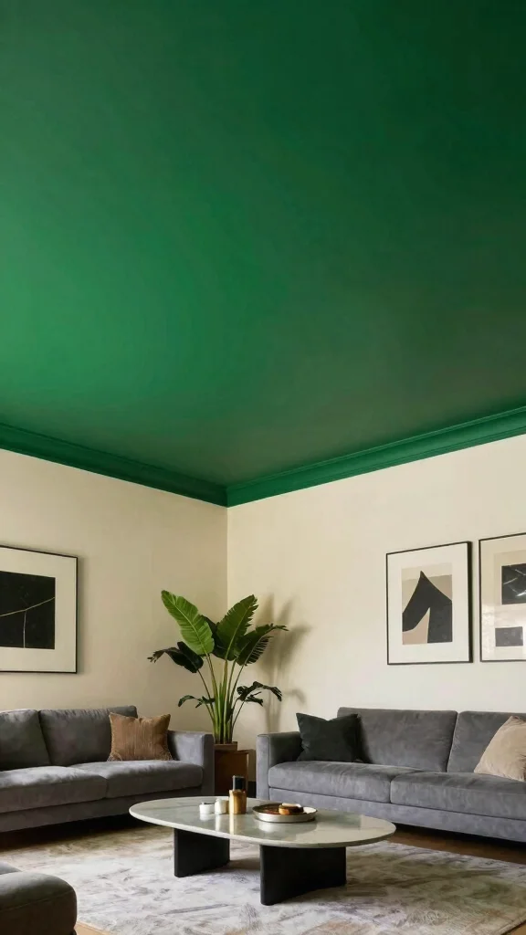 To balance the boldness, pair these colors with neutral furnishings to create a harmonious environment. Accent lighting can further enhance the ceiling’s color, creating a captivating effect in the evenings. This approach ties into current trends of personal expression and distinctive design.