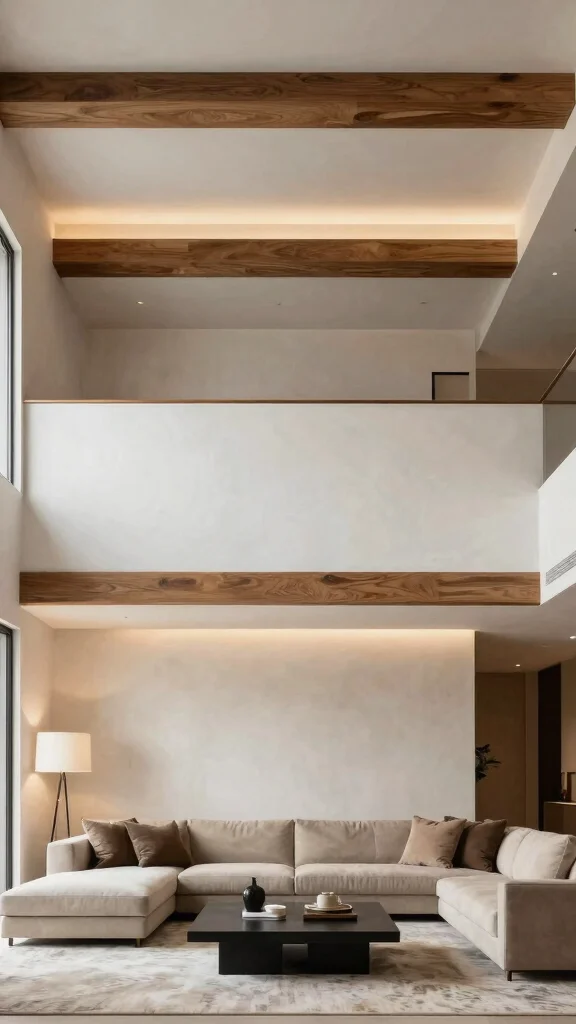 Layered ceilings are an exceptional way to introduce depth and intrigue to your living room. By varying the heights, you create a sense of dimension that enhances the overall perception of space. This design works beautifully with materials like wood and plaster, adding a luxurious touch to your home.