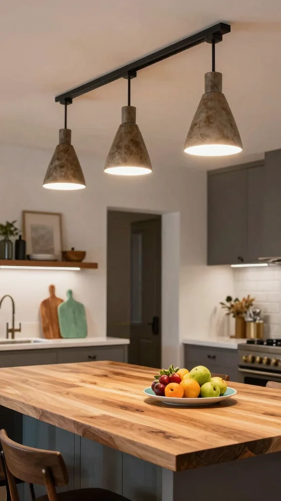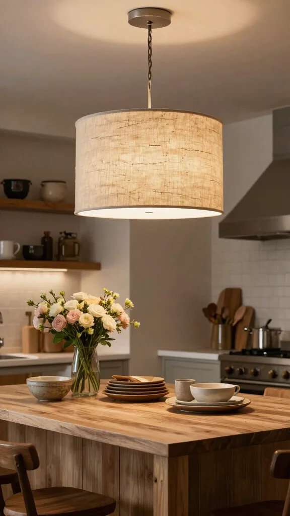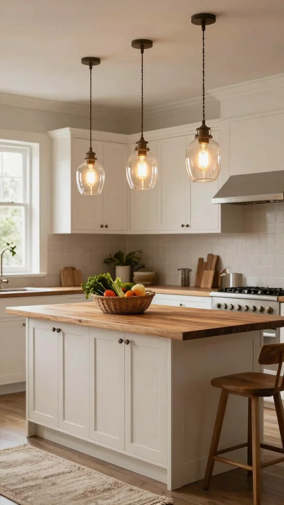 Selecting fixtures with Edison bulbs can cast a warm, inviting glow, perfect for cozy dinners or lively gatherings. Mixing different pendant heights adds a dynamic flair, making your kitchen feel vibrant and engaging.