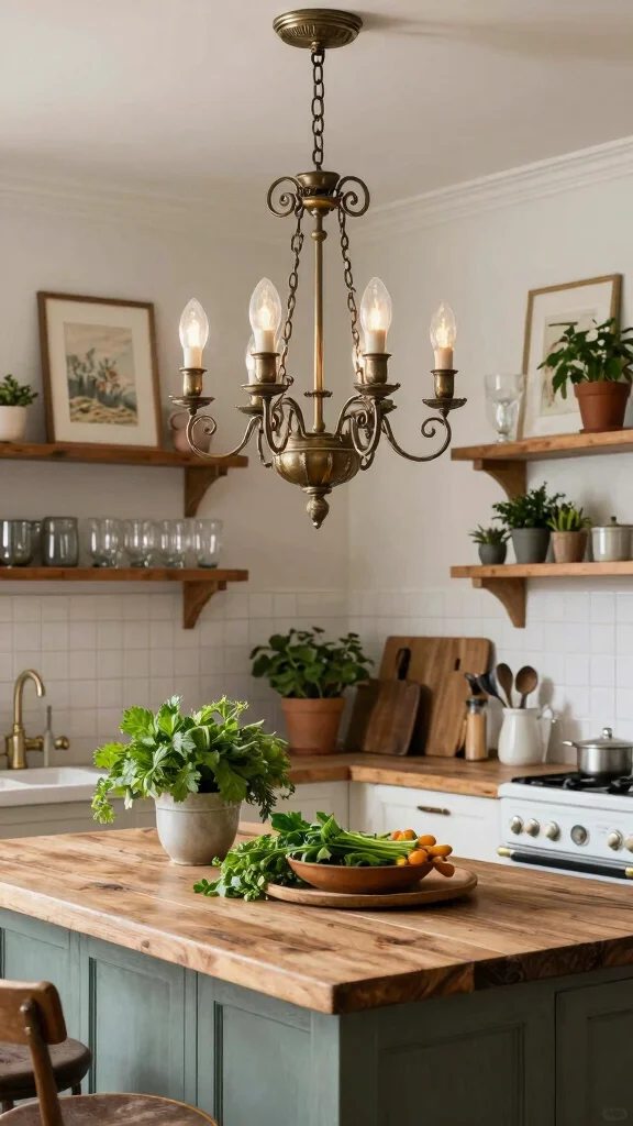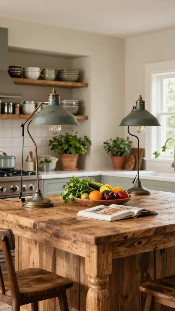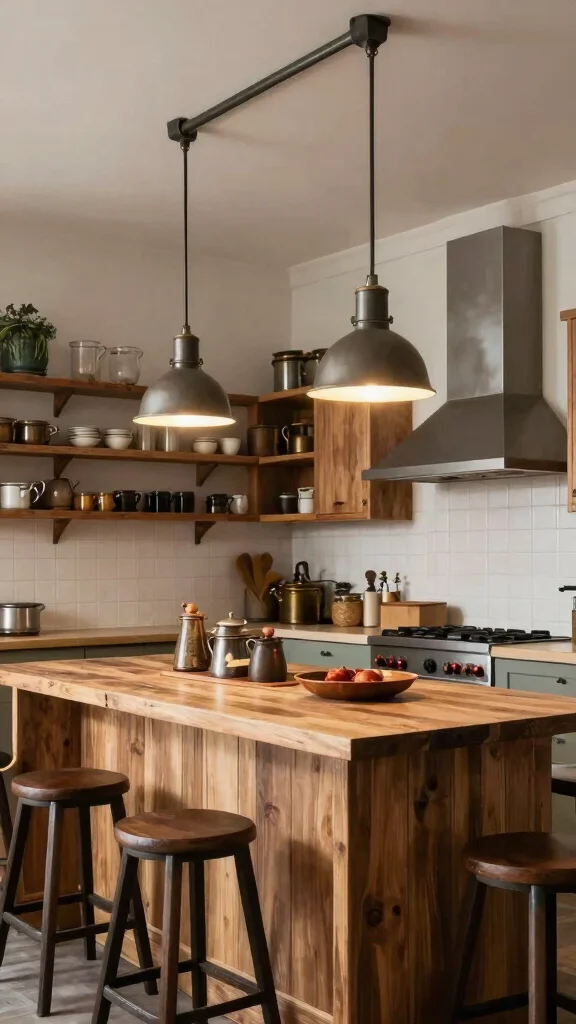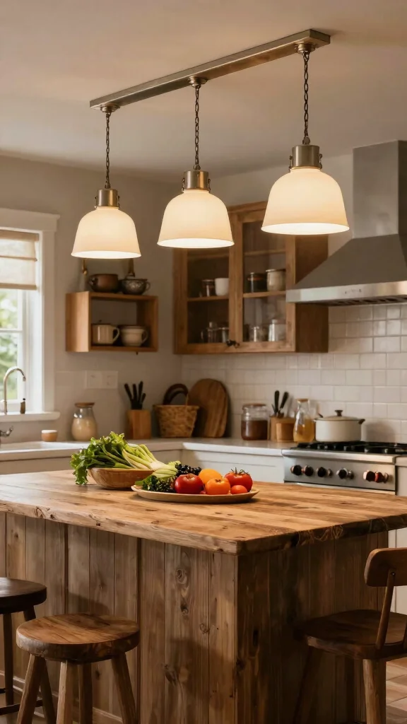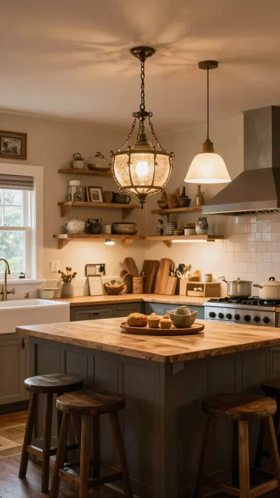 Opt for pendant lights with a vintage twist to enhance rustic charm and create a cozy atmosphere.