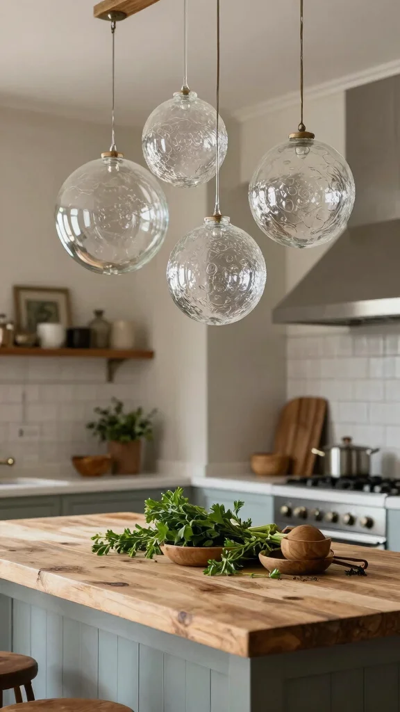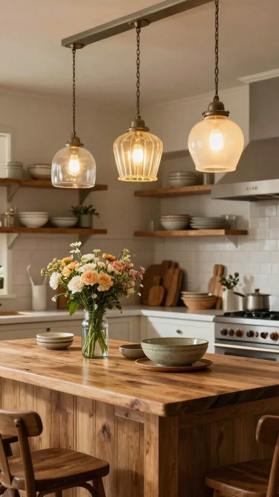 Vintage glass shades are often treasures found at flea markets or antique shops, adding a personal touch to your kitchen.