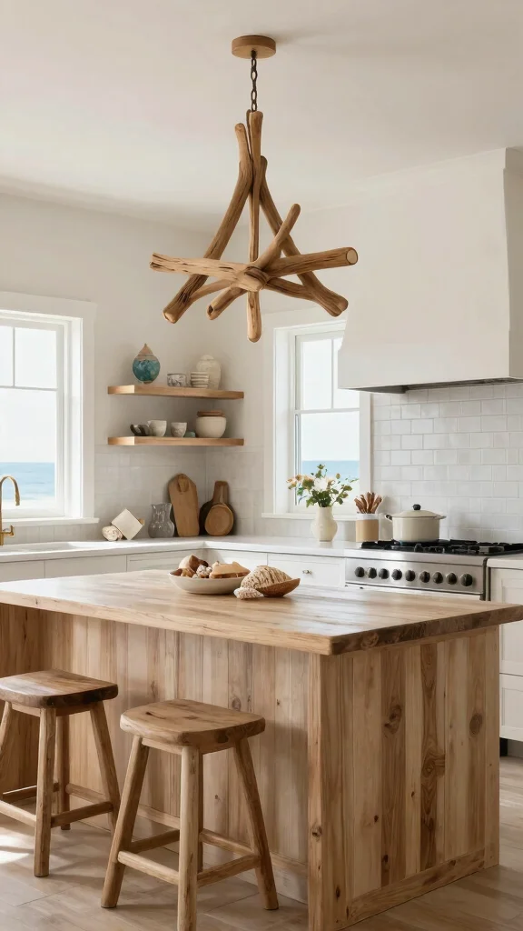 Fun fact: 62% of coastal farmhouse kitchens feel brighter when you hang lighter, rope- and driftwood-inspired lighting above the island. Ship the vibe with nautical accents for a breezy, practical update.