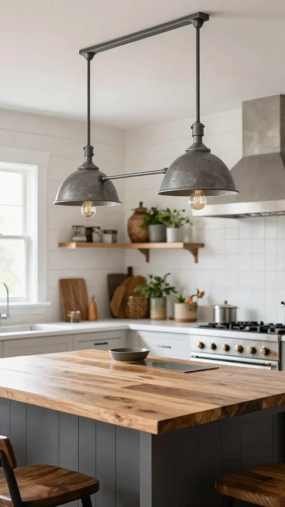 Incorporating industrial lighting above your kitchen island brings a contemporary edge while remaining practical for everyday use.