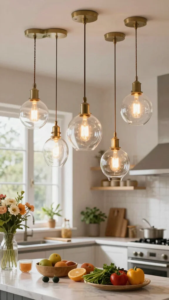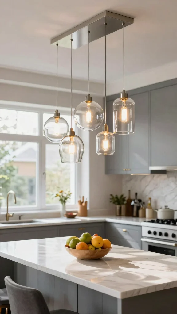 If you have a spacious kitchen, multi-light glass pendant fixtures can make a stunning statement. These lights can illuminate wide areas while adding visual interest through varying heights and designs. Picture how they beautifully coordinate with kitchen islands or dining areas, creating an inviting atmosphere.