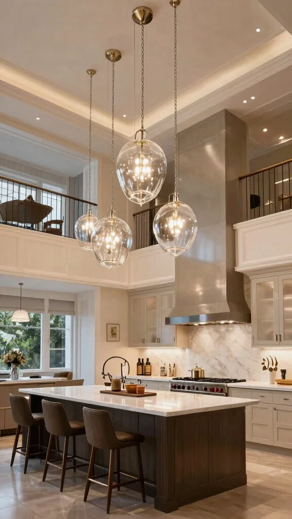 Did you know oversized glass pendants can make a space feel up to 20% bigger? When you group two or three hanging lights, their reflective glass bounce light for daytime brightness and evening drama. Aim for ceilings high enough to breathe—then enjoy a bold, practical focal point.
