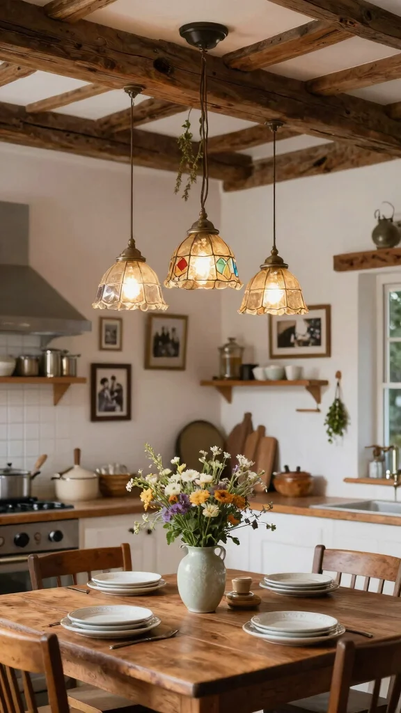 Vintage glass pendants not only illuminate your kitchen but also evoke feelings of warmth and nostalgia, perfect for family gatherings.