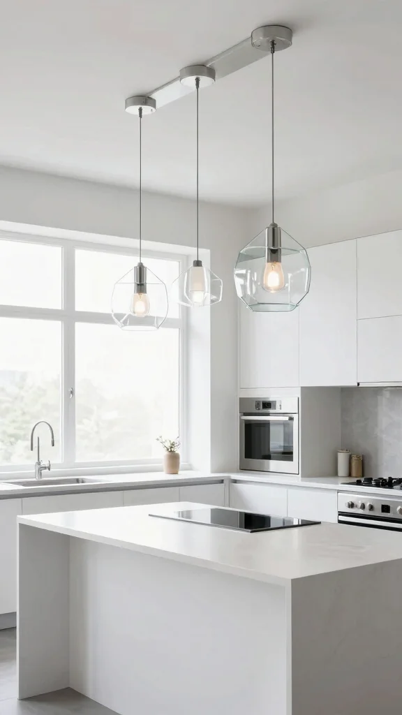 Geometric glass pendant lights are gaining popularity for their modern and sophisticated flair. Featuring bold shapes like hexagons or triangles, these fixtures make a striking statement in any kitchen. Imagine how their unique forms can add an artistic touch, elevating even the simplest kitchen design.