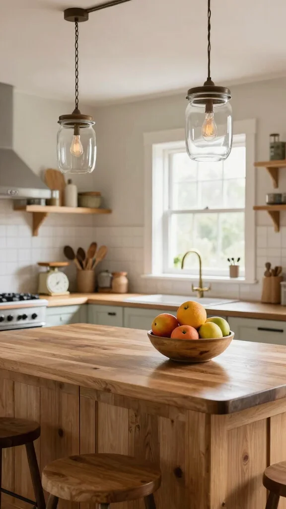 Clear glass jar pendants evoke nostalgia and warmth, making your kitchen feel cozy and inviting.