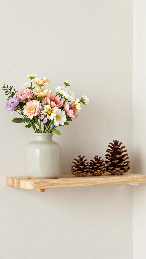 – Use fresh flowers in spring or pinecones in winter for a natural touch.