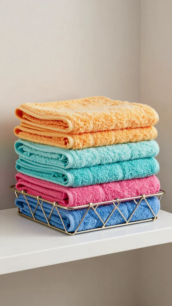 Neatly rolled or folded towels create an organized and inviting display. Mixing and matching colors can add a playful touch that brings life to the space. Using a decorative basket to hold extra towels adds flair while keeping things tidy.