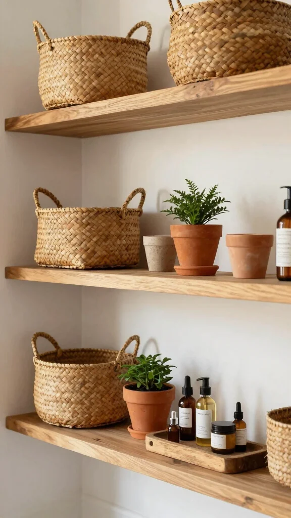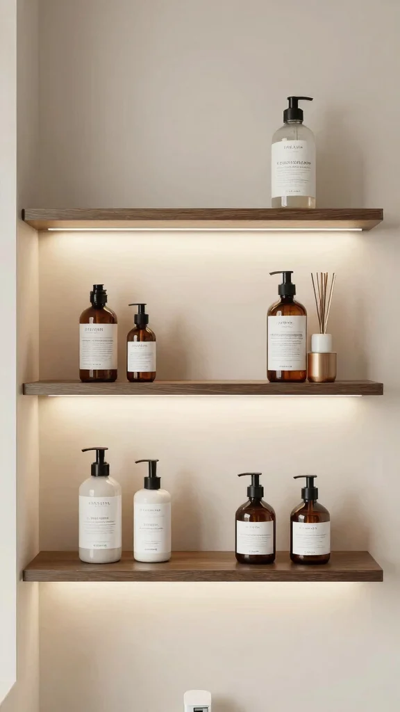 – Incorporate Natural Elements: Use plants and wood accents to add warmth and a touch of nature to your shelves. These elements can soften the space and create a spa-like atmosphere.