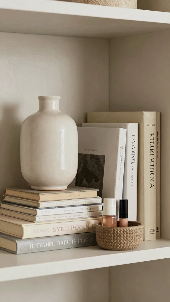 This method creates a curated appearance while ensuring your shelves remain visually engaging and organized.
