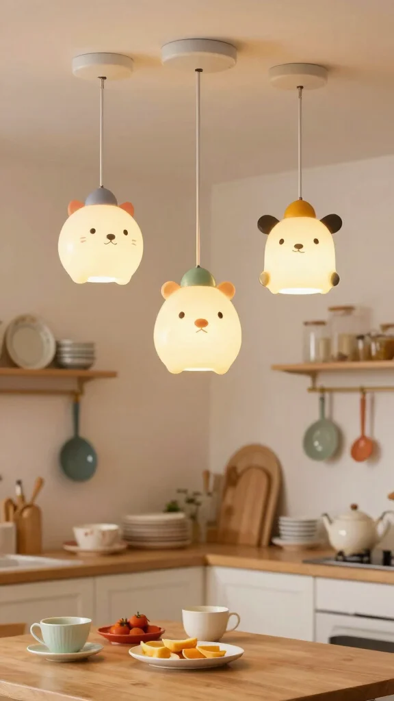 Position these fun fixtures above your workspace to create a delightful focal point while cooking. Their unique designs not only provide illumination but also serve as conversation starters, enhancing the playful vibe of your kitchen. Keeping surrounding decor simple allows your anthropomorphic fixture to shine and stand out.