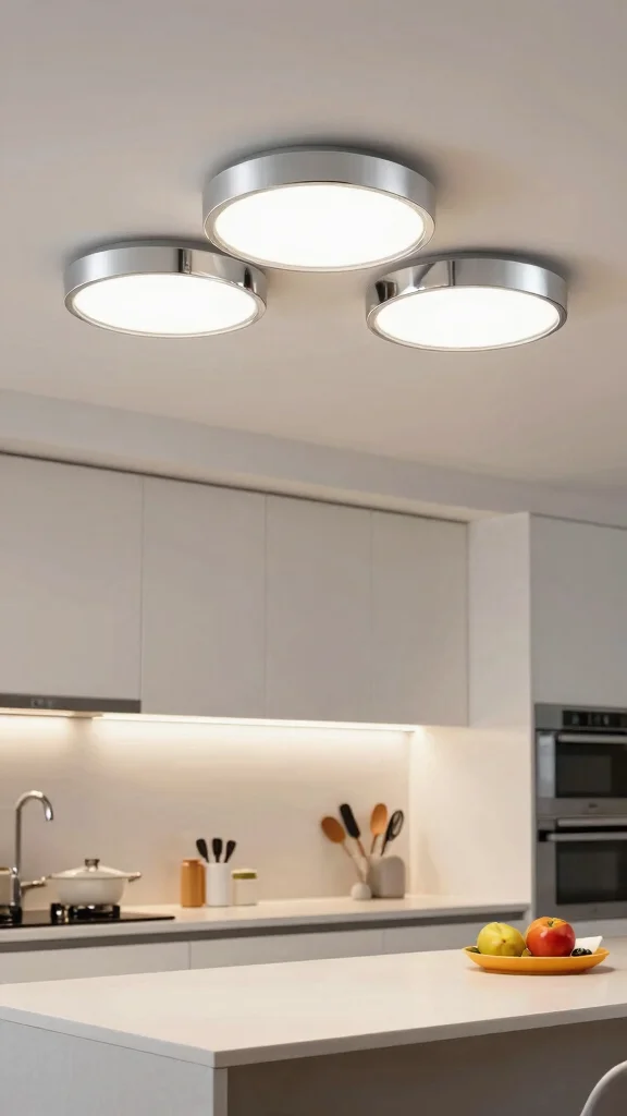 Sleek modern disc lights offer a minimalist aesthetic that enhances your kitchen’s elegance without overwhelming it. With their low-profile designs and various finishes, including chrome and matte, they seamlessly blend into any decor style. They provide even illumination, creating a sense of spaciousness, which is especially beneficial for small kitchens with low ceilings. Imagine how these understated fixtures can complement the overall design while ensuring your kitchen remains bright and welcoming.