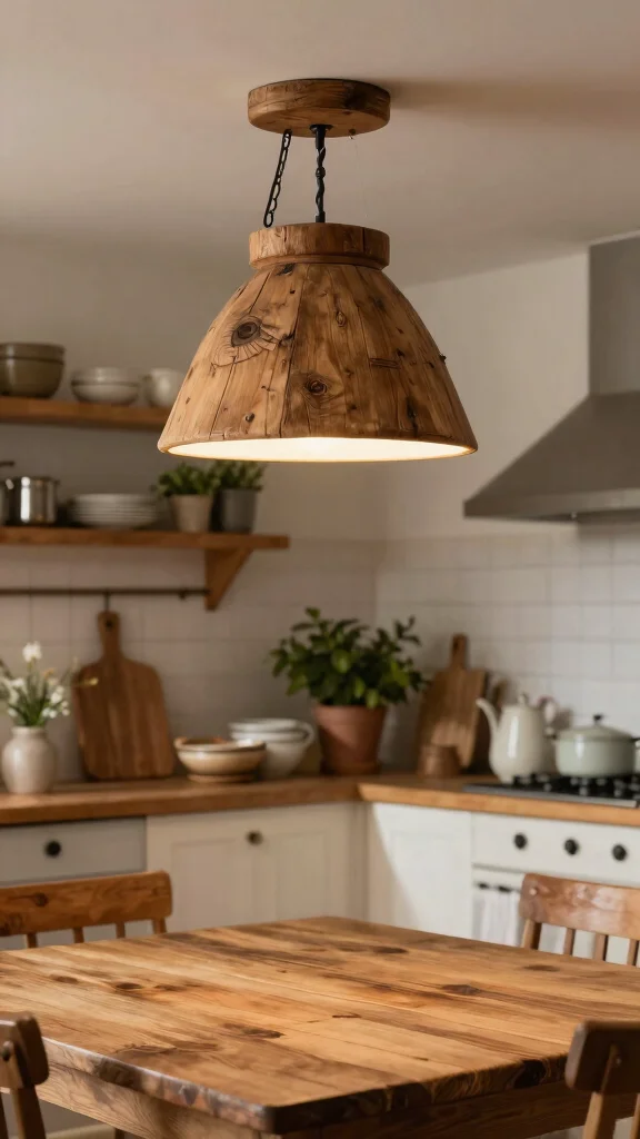 This rustic approach not only enhances your kitchen’s aesthetic but also showcases how thoughtful lighting can contribute to a warm and inviting atmosphere.