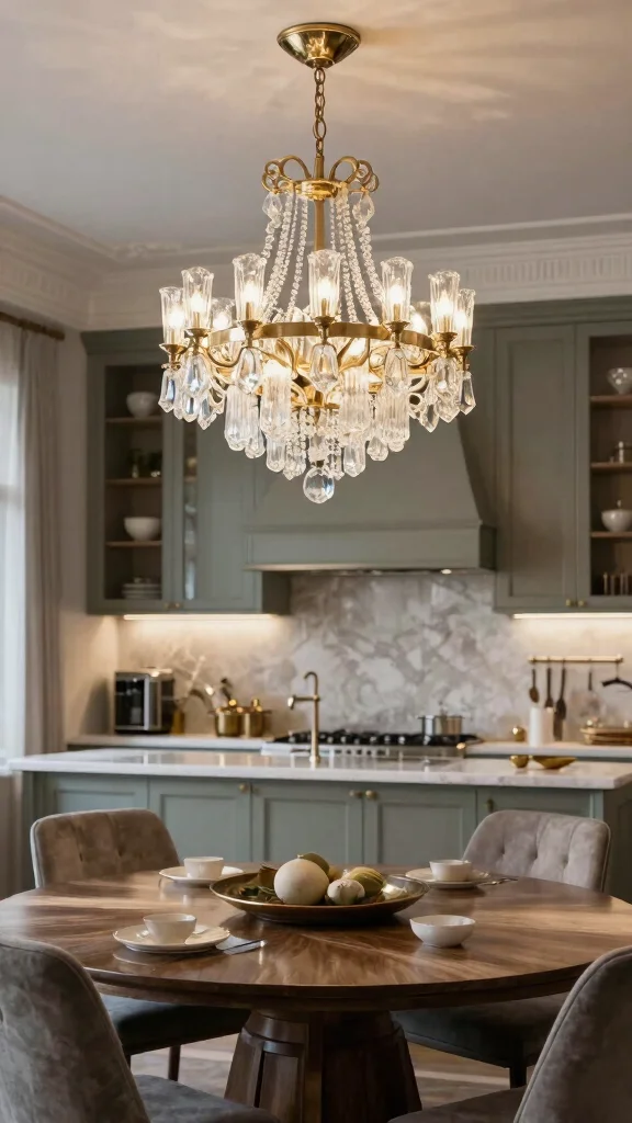 A statement chandelier can transform your kitchen into a breathtaking space while maintaining its functionality.