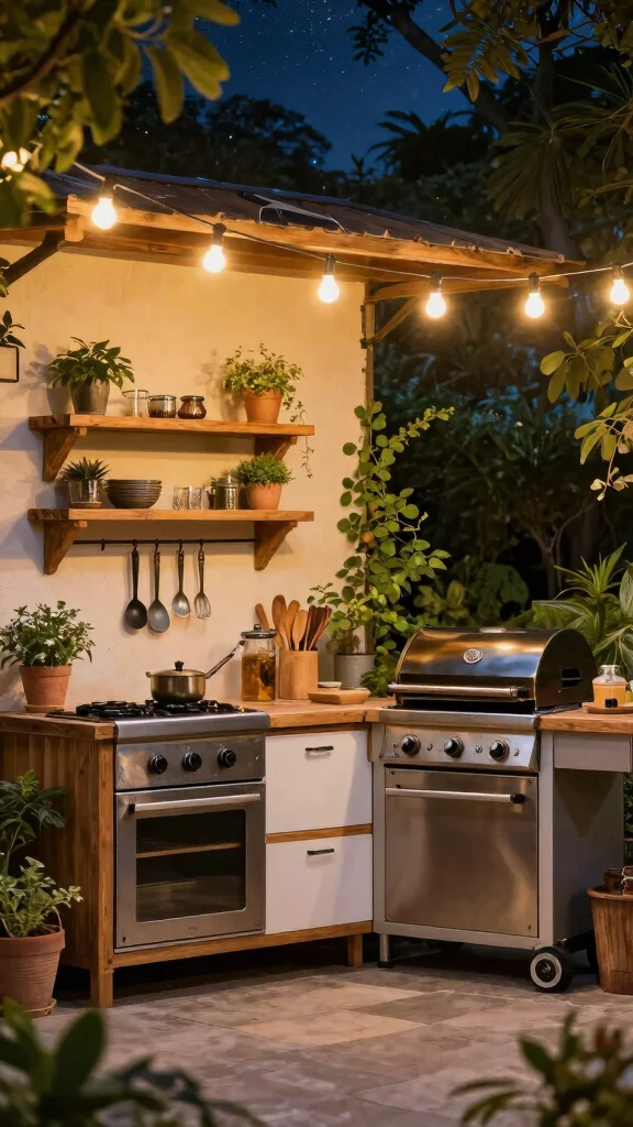 These solar lights can transform your outdoor kitchen into an inviting space, perfect for gatherings or quiet evenings under the stars.