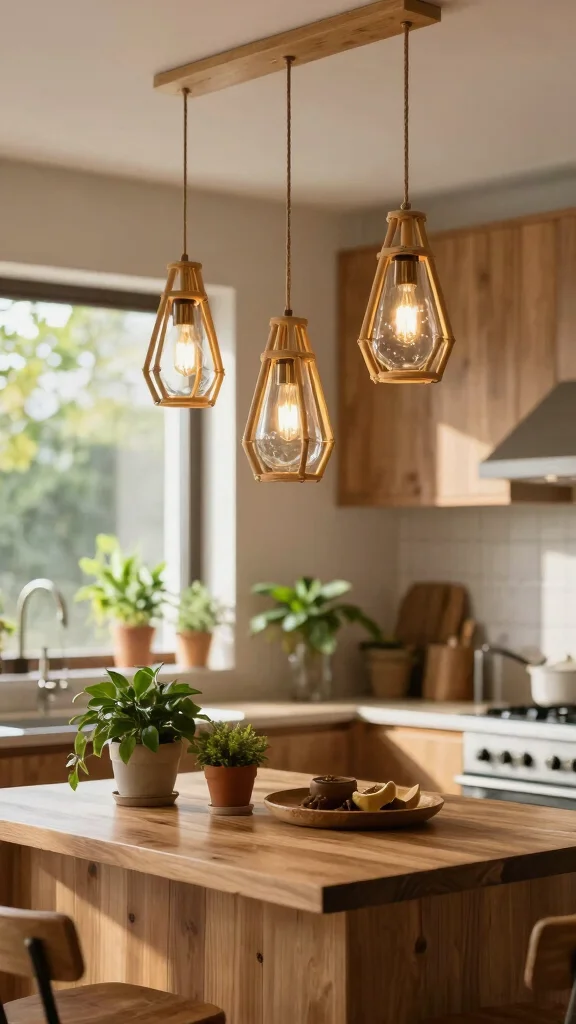 Choosing eco-friendly light fixtures not only supports sustainable living but also adds unique charm to your kitchen. Look for options made from recycled materials or sustainably sourced woods, like bamboo pendant lights or glass fixtures crafted from reclaimed bottles. These distinctive designs not only showcase your commitment to sustainability but also infuse warmth into your kitchen space.