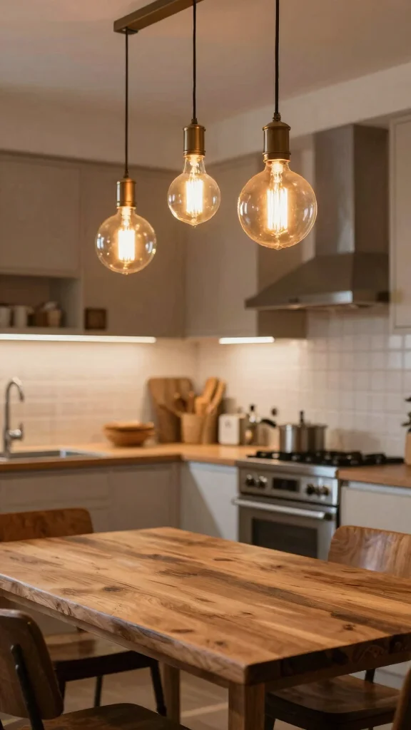 – Incorporate pendant lights over dining areas.