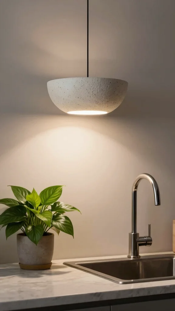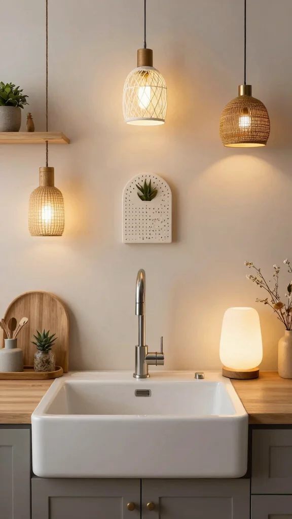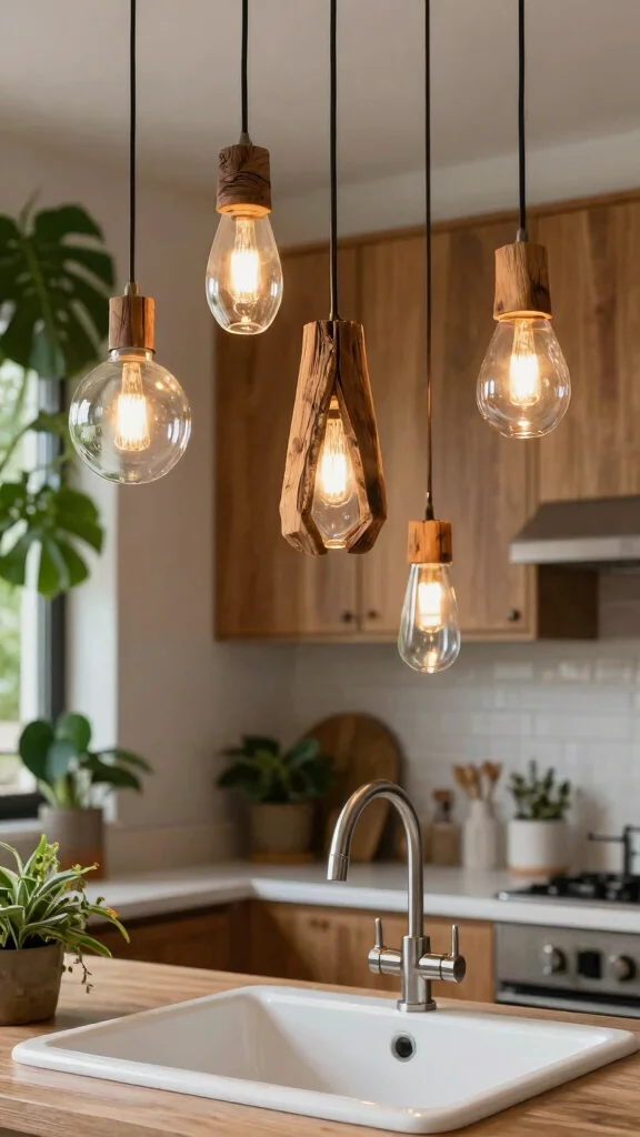 Opt for eco-friendly pendant lights to enhance both style and sustainability in your kitchen sink area.