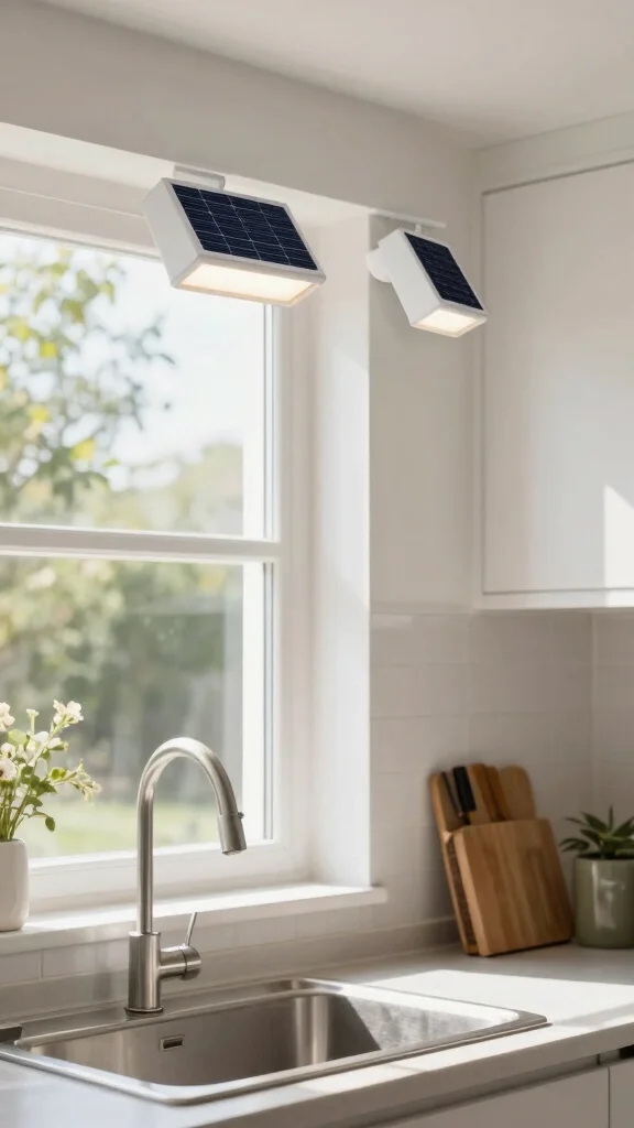 Ensure the lights have a reliable battery backup for those cloudy days, and select designs that complement your kitchen’s style. Positioning them near windows maximizes solar exposure, enhancing their efficiency.