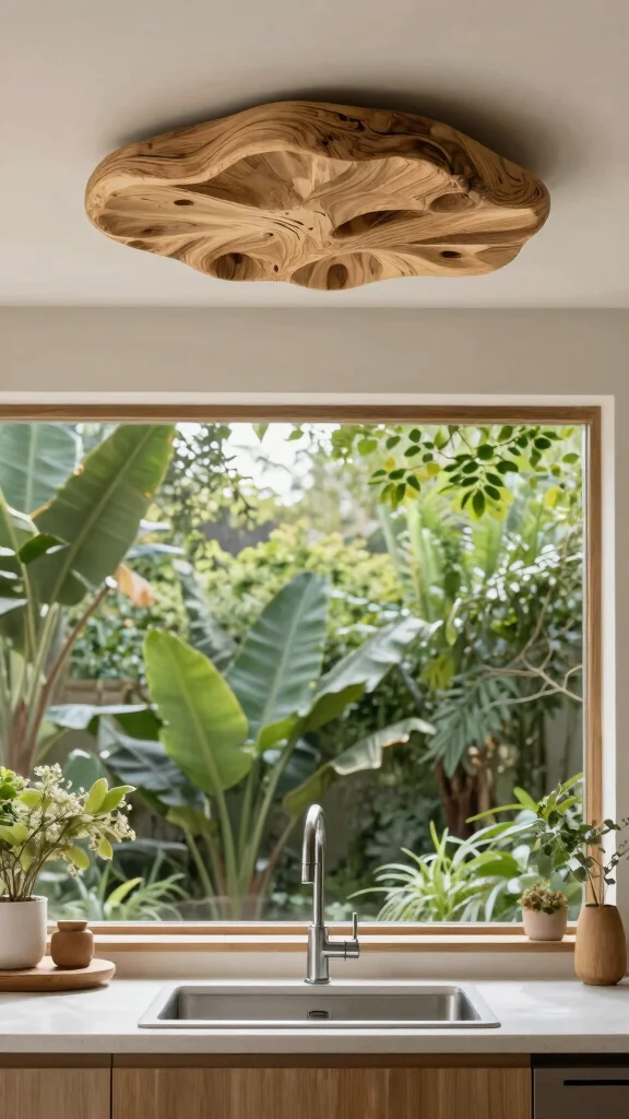 Choosing ceiling fixtures that draw inspiration from nature can create a tranquil atmosphere in your kitchen. These designs often showcase organic shapes and materials that evoke a sense of calm, enhancing the overall decor. Opt for fixtures made from sustainable materials to align with your eco-friendly goals while brightening your sink area.