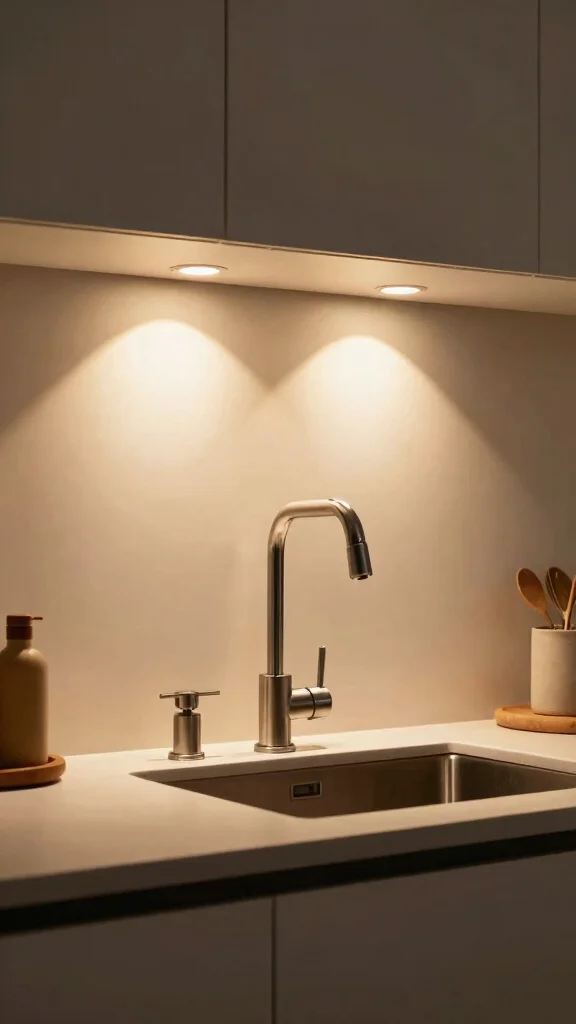Did you know that under-cabinet LED strips use up to 70% less energy than traditional bulbs? For kitchen sink lighting ideas, set warm white strips at task-brightness and cozy-dim for evenings—efficient, clutter-free, and exactly where you need it.