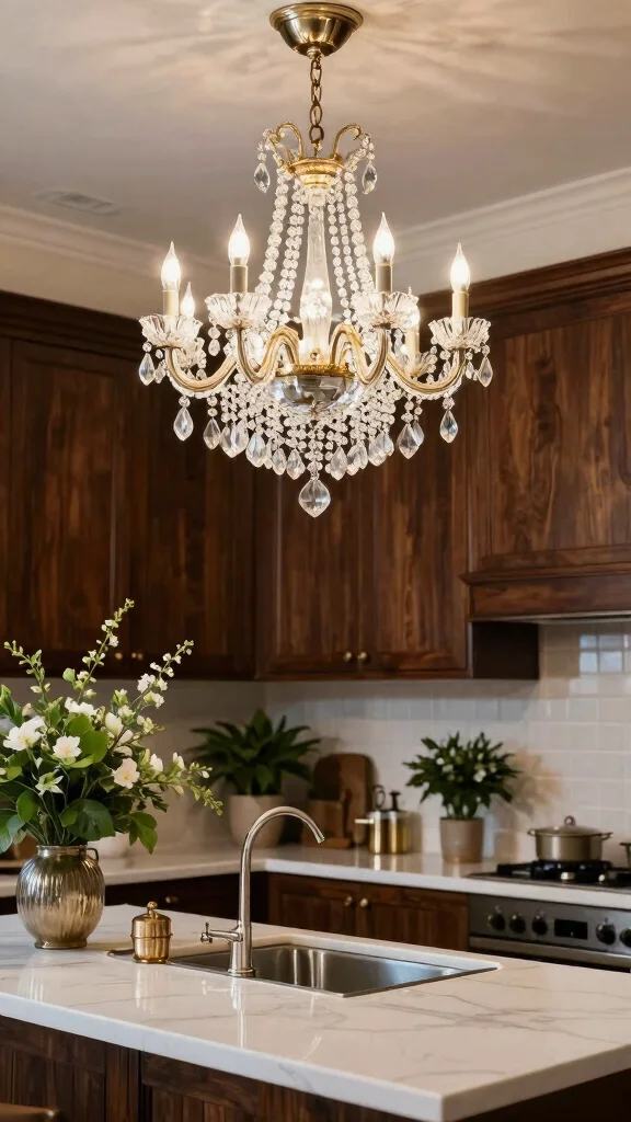Vintage-inspired chandeliers can bring a touch of elegance to your kitchen, making it feel more sophisticated and inviting. These fixtures serve the dual purpose of providing ambient light while serving as a stylish focal point above your sink. When choosing a chandelier, consider options made from sustainable materials or those that feature energy-efficient bulbs for a modern touch.