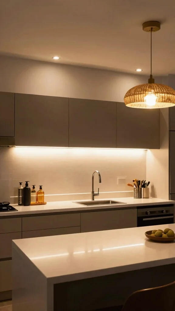 Minimalism in lighting fosters a sophisticated ambiance, making your kitchen feel more open and airy.