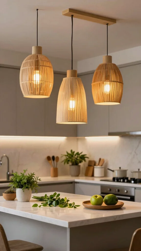 These artistic lights can brighten up darker corners and act as focal points over islands or dining areas, enhancing both style and functionality.