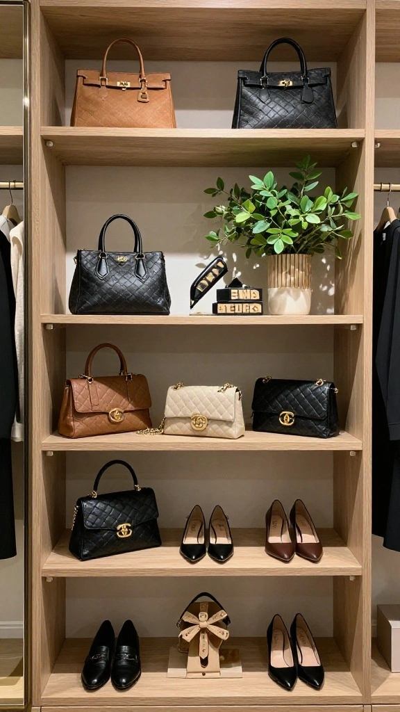 – Display curated collections of handbags, shoes, or books.