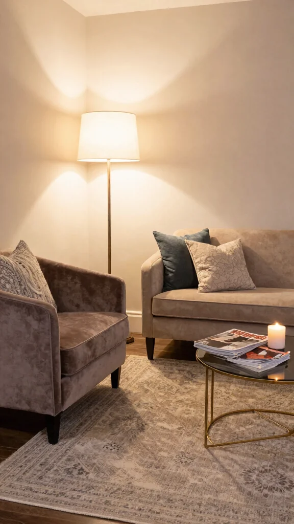 – Use a soft area rug to define the space and add warmth.