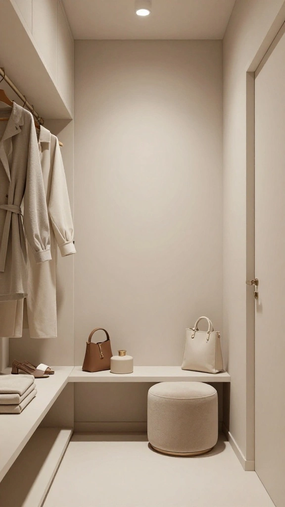 Creating a cozy seating area in your dressing room can transform it into a relaxing retreat. Whether you choose a plush armchair, a small loveseat, or an elegant bench, this space allows you to unwind or try on outfits comfortably. Selecting fabrics that complement your design—like soft velvets or chic leathers—adds to the luxurious vibe.