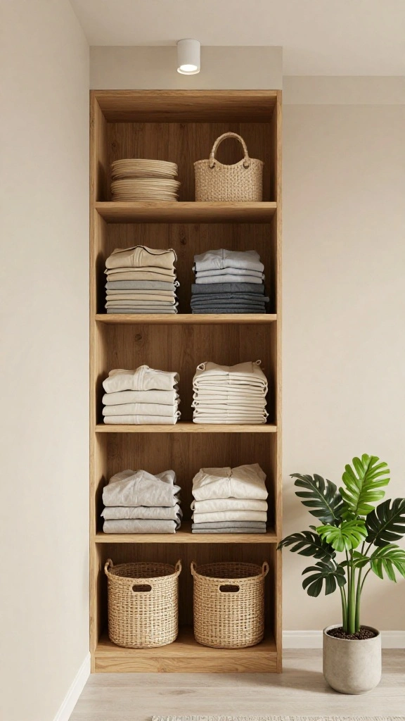 Open shelving brings a refreshing sense of organization to your minimalist dressing room. This design choice not only enhances functionality but also creates a beautiful visual display of your favorite clothing and accessories. Using natural materials like wood for shelves adds warmth and texture, making the space feel inviting and stylish.