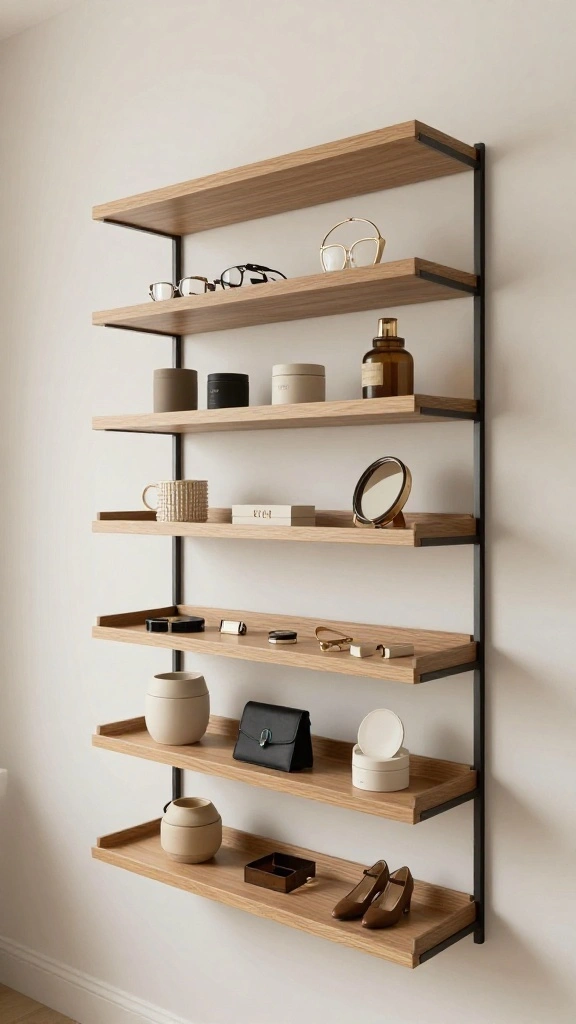 Use vertical storage like tall slim wardrobes, wall-mounted racks, and magnetic strips to keep items off the floor and visible—perfect for minimalist home decor and dressing room ideas.