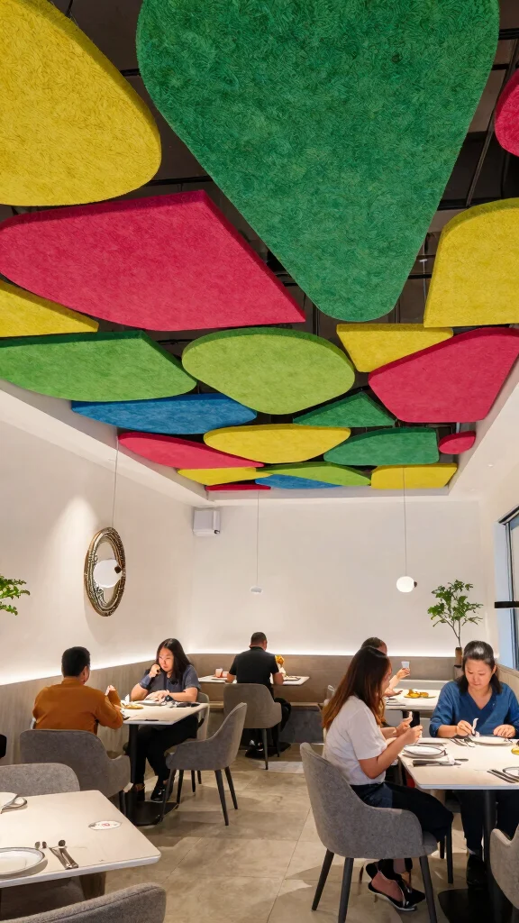 Eco-friendly acoustic panels prove sustainable design can be loud with impact. When planning restaurant ceiling ideas, choose recycled materials and bold shapes to absorb sound, cut noise, and boost guests’ comfort—without compromising style.