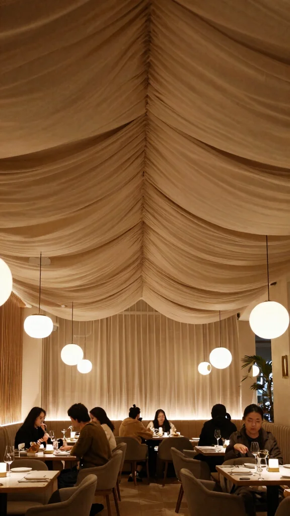 Draping fabric across your restaurant’s ceiling can create a warm, inviting atmosphere that transforms the space. This design approach softens the aesthetic and allows for creative expression through color and texture. Eco-friendly fabrics can be sourced to ensure sustainability while enhancing your decor.