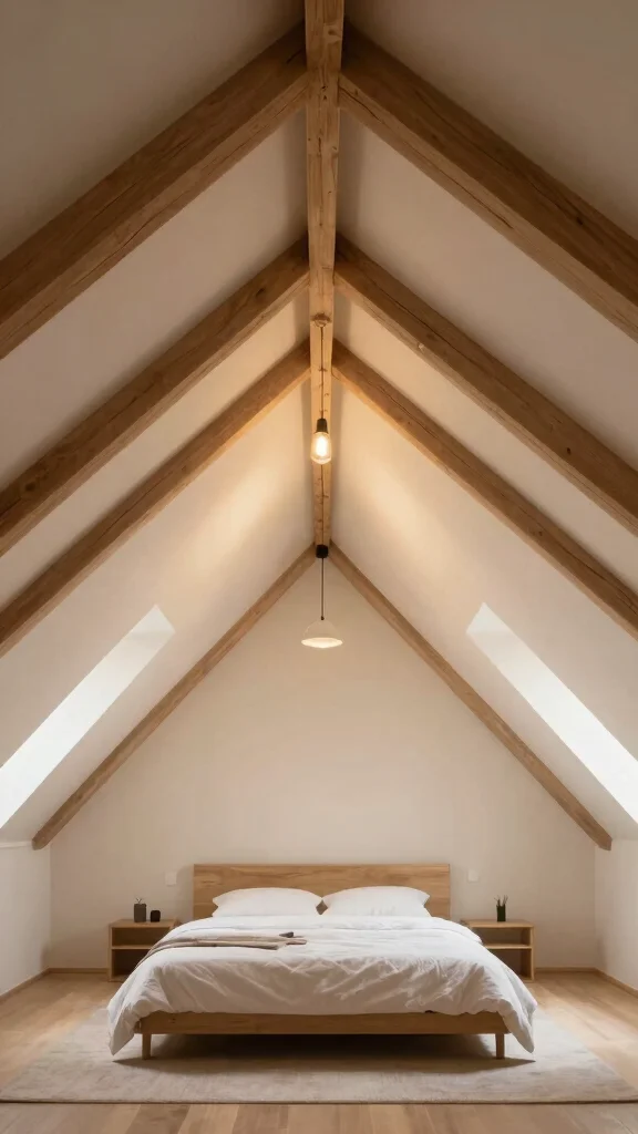 Combining this with light-colored walls enhances the height, making your attic feel even more spacious. This technique resonates with current design trends that celebrate unique architectural elements in homes.