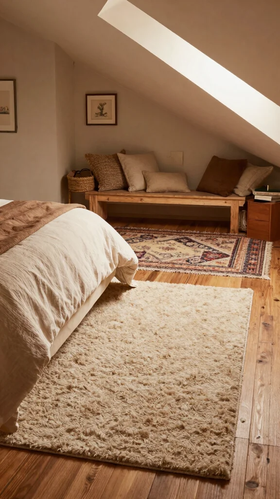 Adding rugs can enhance both the visual and tactile elements of your attic bedroom, making it feel cozy and lived-in.