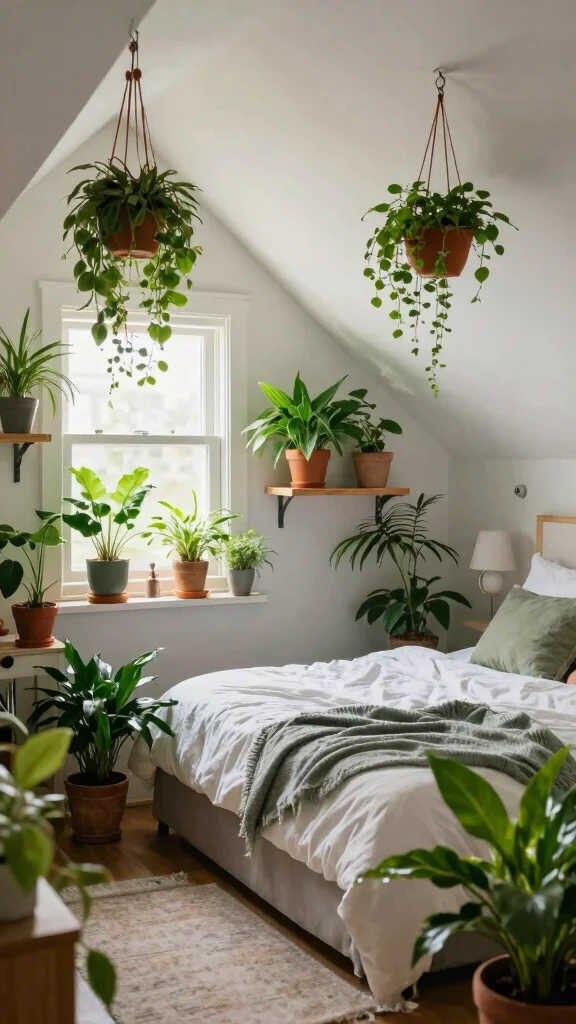 Integrating plants can create a refreshing atmosphere that makes your attic bedroom feel alive and inviting.