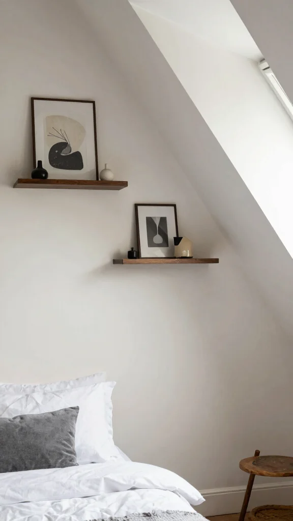 Think about using triangular shelves or lamps with angular designs that echo the sloped ceiling. This idea connects to the trend of creating visually stimulating environments that reflect personal style.
