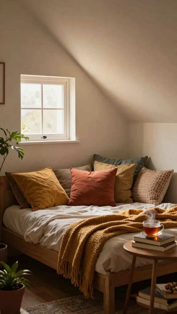 Layer textiles with cozy bedroom ideas like a warm rug, plush bedding, and breathable drapes, while keeping small space decor in mind to avoid visual clutter. Opt for patterns and textures that are durable for attic conditions and easy to clean, while preserving a bright, welcoming feel.