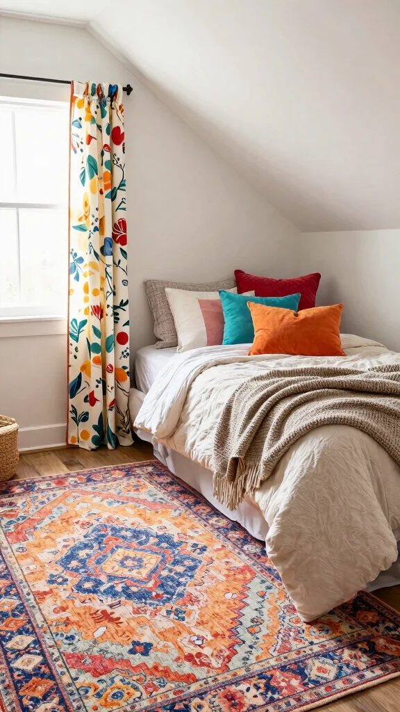 Area rugs are an excellent way to warm up your attic bedroom and provide comfort underfoot, especially on hardwood floors. They can help define different areas of the room, like a reading nook or workspace. Opt for area rugs that fit the scale of your space; larger rugs can create a more expansive feel, while smaller ones can make intimate spots.