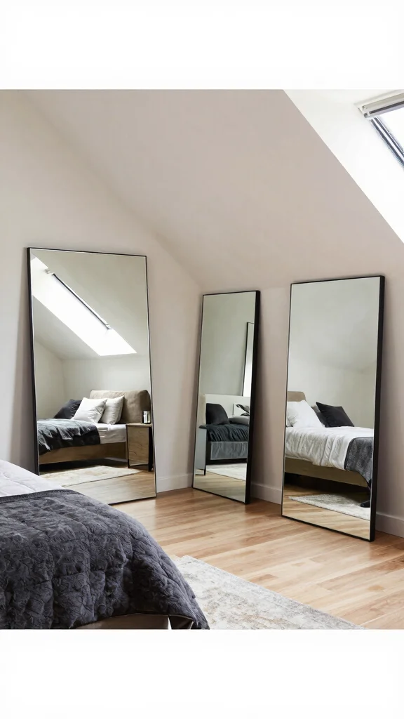 With strategic mirror placement, you can brighten your attic bedroom and create an illusion of depth.