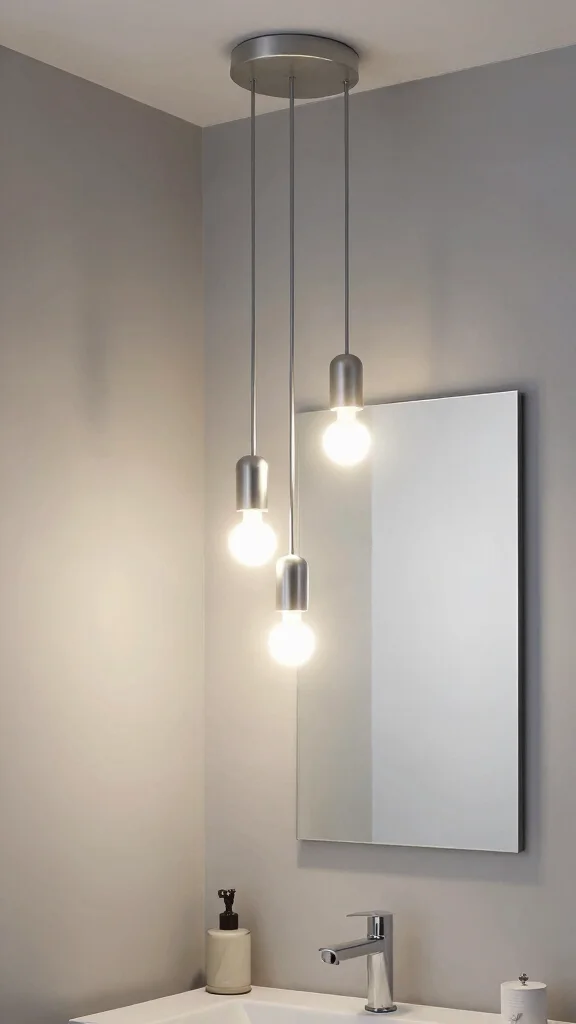 Fun fact: Using a trio of LED fixtures can brighten a small bathroom ceiling ideas by up to 85% while cutting energy use. Hanging lights at different heights creates depth, making the space feel larger without clutter—perfect for compact bathrooms.